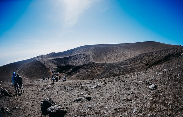 Für aktive Touristen gibt es geführte Wanderrouten (einige mit Zusatzaktivitäten wie Weinverkostungen), die das authentischste Erlebnis mit dem Vulkan bieten. Der Aufstieg zu den oberen Kratern dauert 6 Stunden und kostet ab 60 Euro pro Person. Wer mehr über die vorhandenen Routen auf dem Ätna erfahren möchte, dem sei unser ausführlicher Artikel dazu empfohlen.
