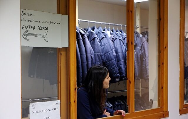 Die meisten Touristen beeilen sich nach der Ankunft im Rifugio, ein Ticket zu kaufen und in die Seilbahn zu steigen