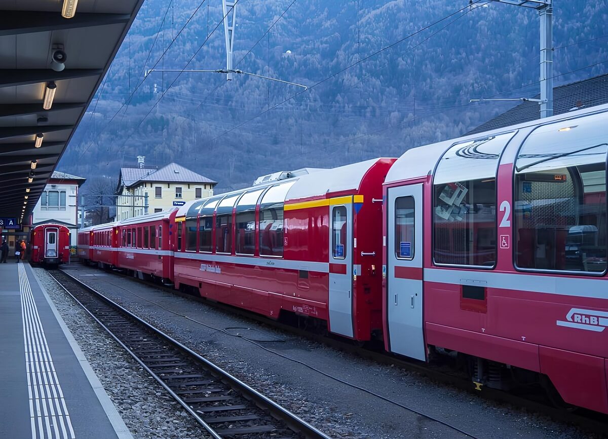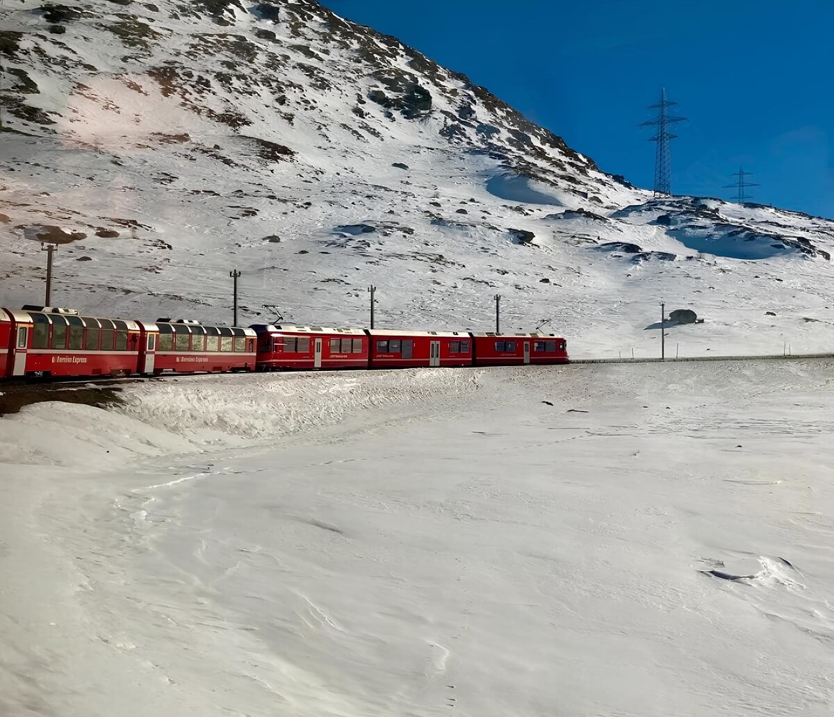 Eine der faszinierendsten Eisenbahnstrecken Europas verläuft in der malerischen Gegend der Engadiner Alpen, zwischen Italien und der Schweiz. Der Bernina Express, dessen Route über eine einspurige Schmalspureisenbahn verläuft, verbindet die italienische Stadt Tirano mit dem schweizerischen Chur.