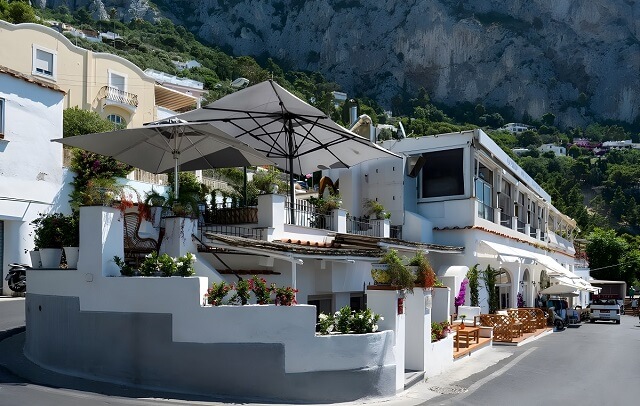 Die Stadt Capri grenzt an die Häfen Marina Piccola und Marina Grande. Hier gibt es eine große Anzahl von Hotels, Geschäften, Clubs, Cafés, Unterhaltungszentren.
