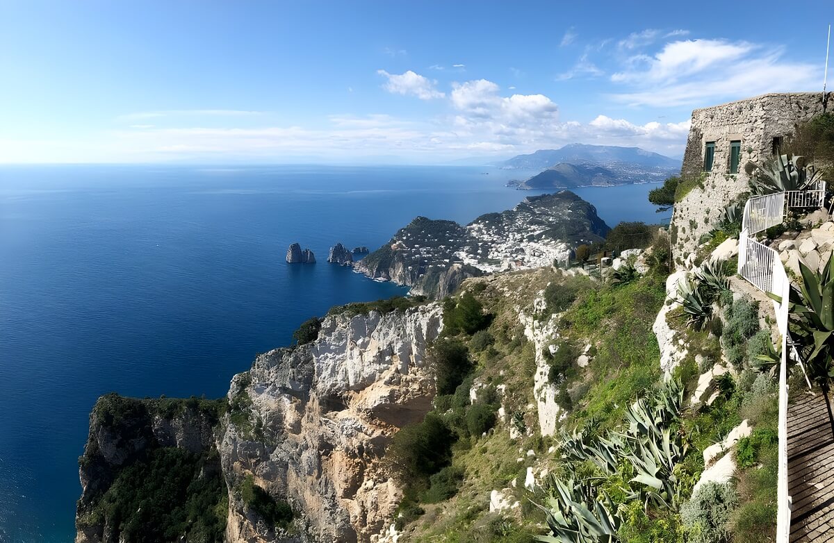 Ein weiterer atemberaubender Ort, von wo sich ein Panoramablick auf Capri öffnet. Der schwedische Arzt und Schriftsteller Axel Munthe baute die Villa auf einer Anhöhe nordwestlich von Anacapri. Die Höhe des Punktes beträgt 327 Meter über dem Meeresspiegel.