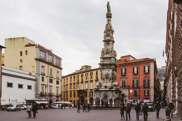 In Neapel kann man Spuren der Vergangenheit sowohl auf den Straßen (Obelisk der Unbefleckten Jungfrau, Foto 1) als auch in Museen treffen (Nationales Archäologisches Museum Neapel, Foto 2)