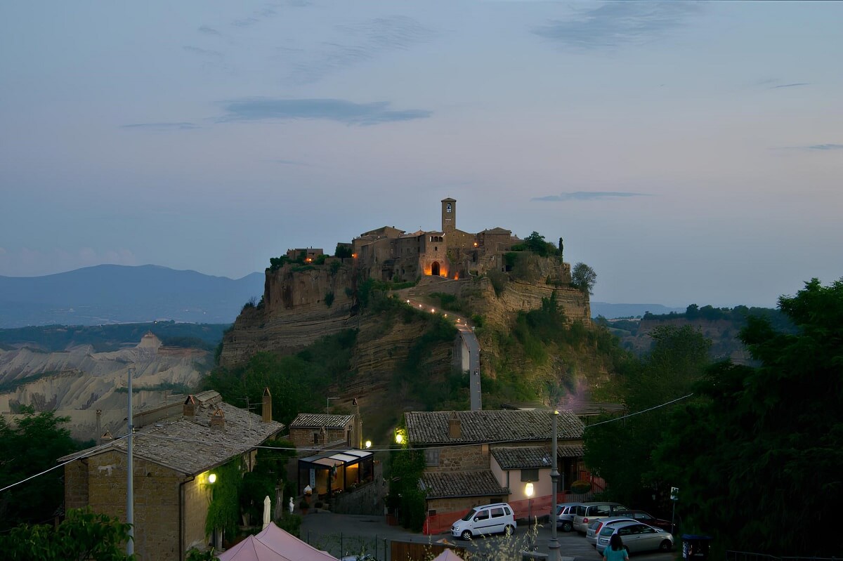 3. Civita di Bagnoregio. Eine zweistündige Autofahrt führt in die „Sterbende Stadt“, auf einem Hügel gelegen. Ihre Einzigartigkeit liegt in der isolierten Lage — die Siedlung ist nur über eine Fußgängerbrücke erreichbar. Die faszinierenden Panoramablicke, die sich vom Hügel eröffnen, rechtfertigen alle Anstrengungen, die für den Weg aufgewendet wurden.