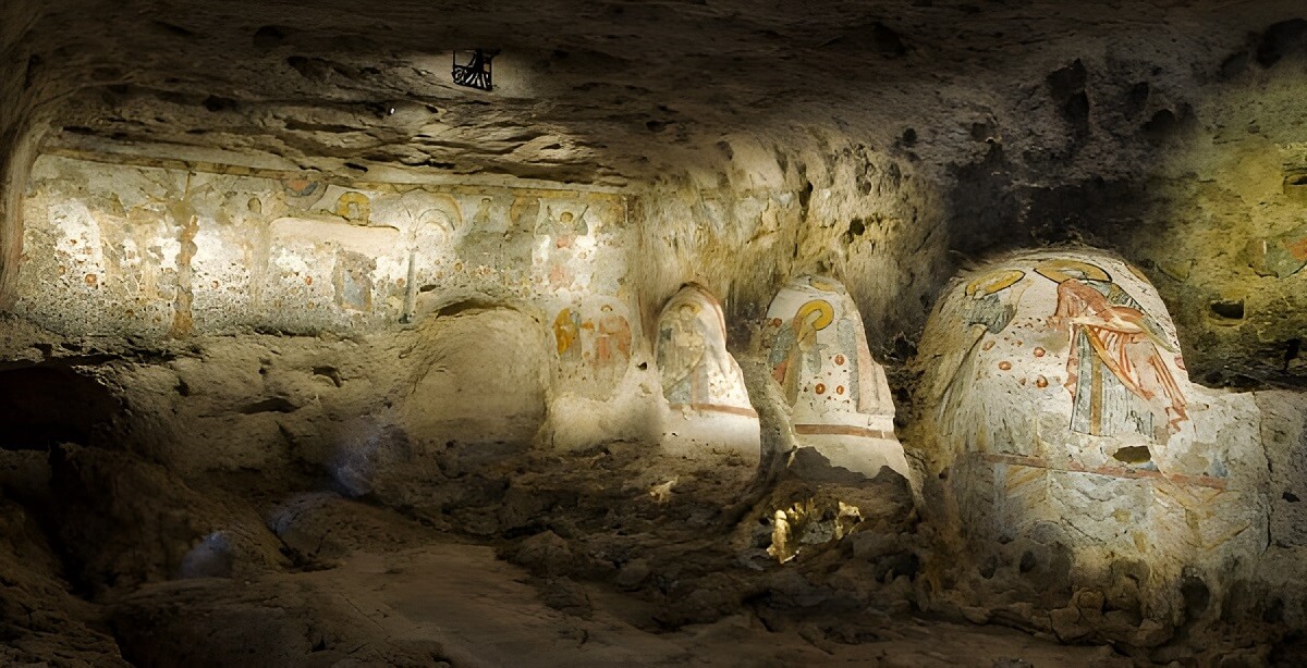 Eine der ältesten ist die Felsenkirche Grotta dei Santi oder Krypta der Erbsünde (Cripta del peccato originale), an deren Wänden ein Zyklus von Darstellungen aus dem 9. Jahrhundert erhalten ist.