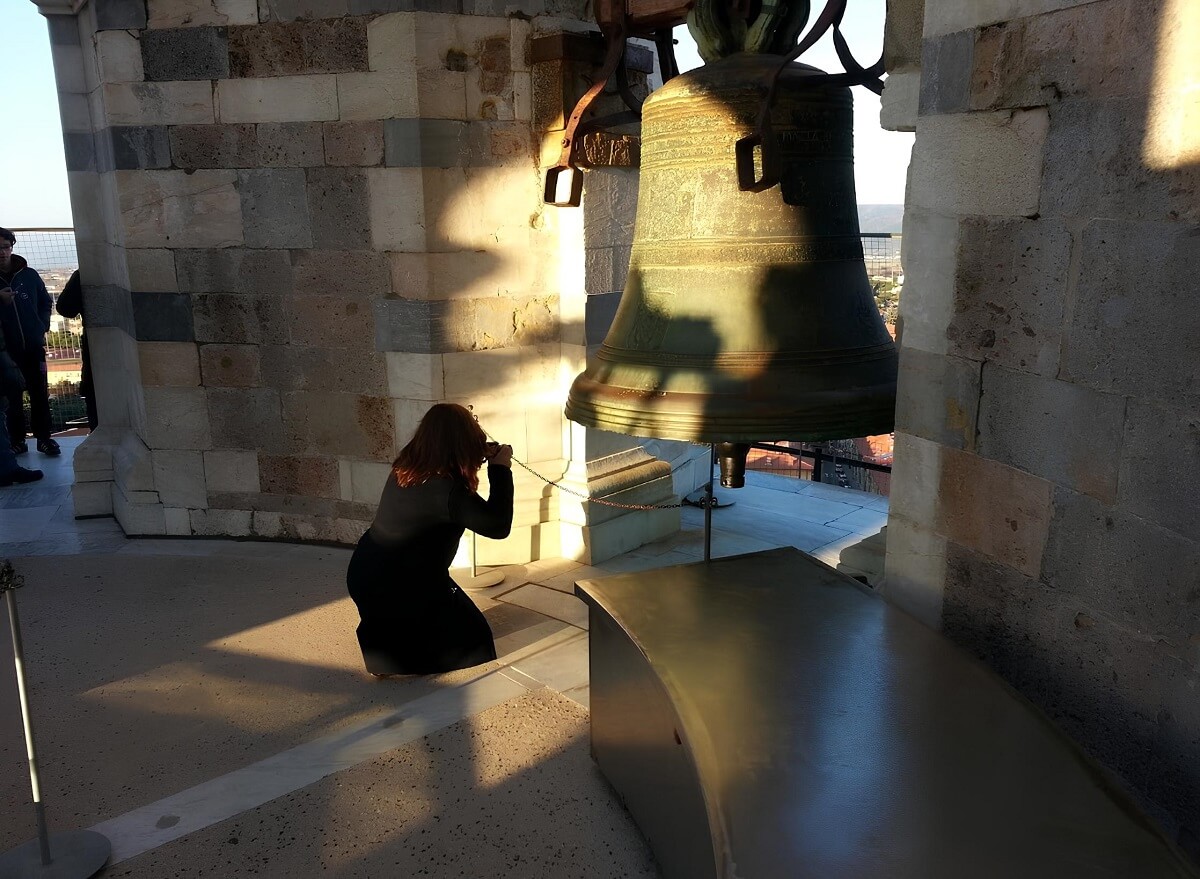 Und hier sind wir, nach kurzem Aufstieg, schon oben. Und wie bereits erwähnt, ist der Schiefe Turm von Pisa vor allem ein Glockenturm.