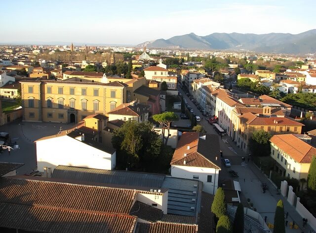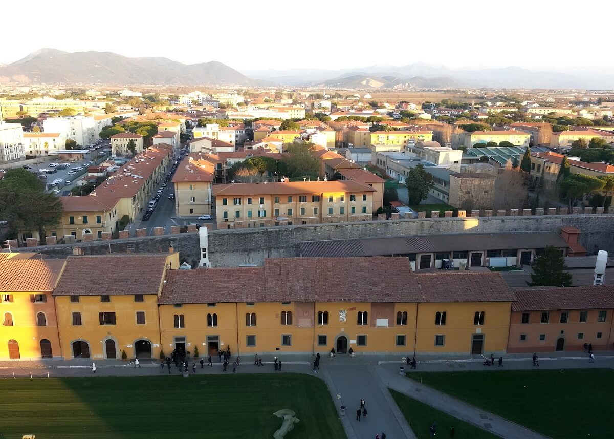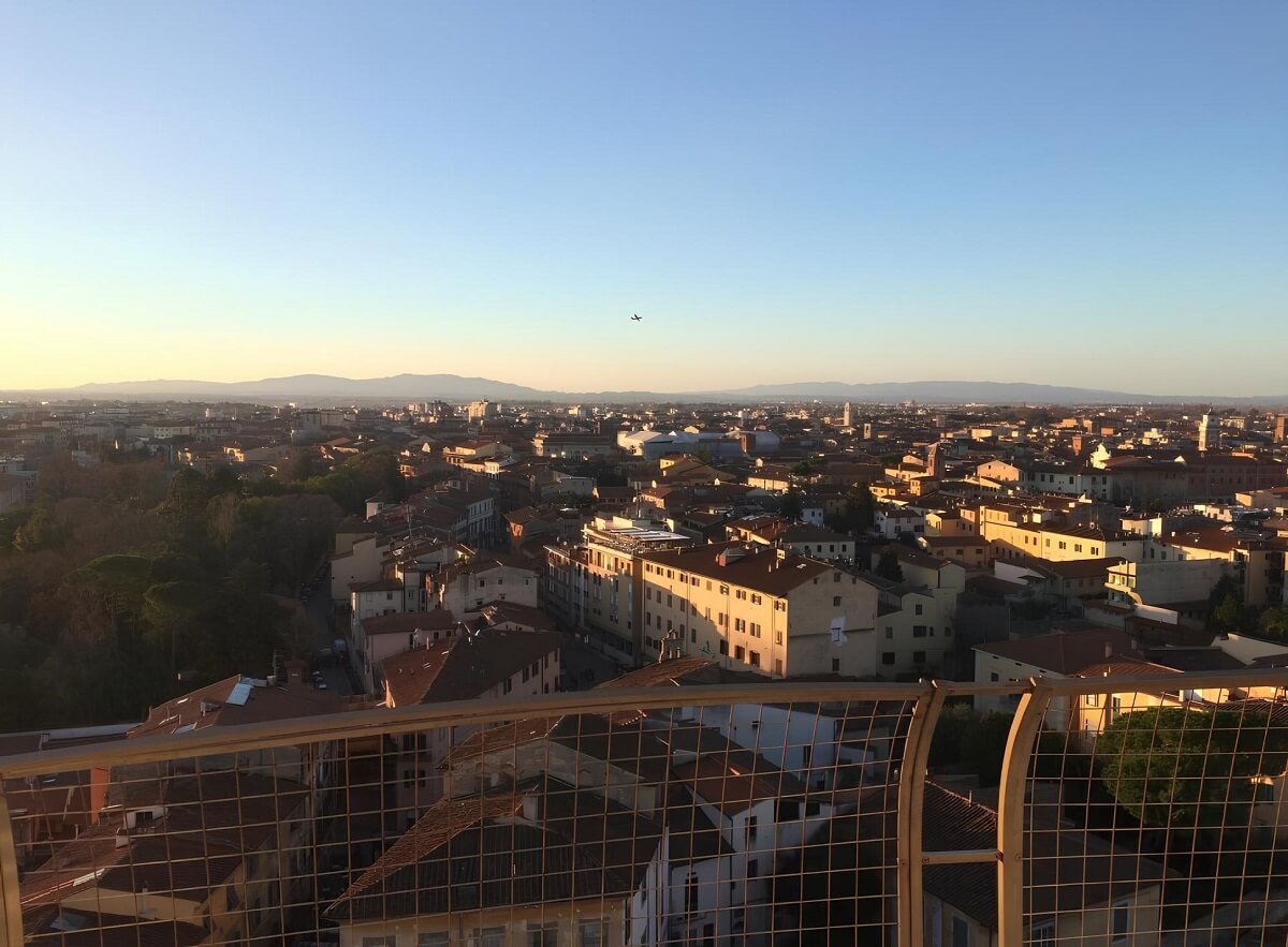 Und in zweiter Linie ist der Schiefe Turm von Pisa bereits eine Aussichtsplattform, neben dem Glockenturm. Im Grunde steigen die meisten Touristen genau wegen der Aussichten hierher. Und es ist verständlich warum. Die Aussichten auf die Stadt, die sich hier eröffnen, sind einfach erstaunlich und atemberaubend.