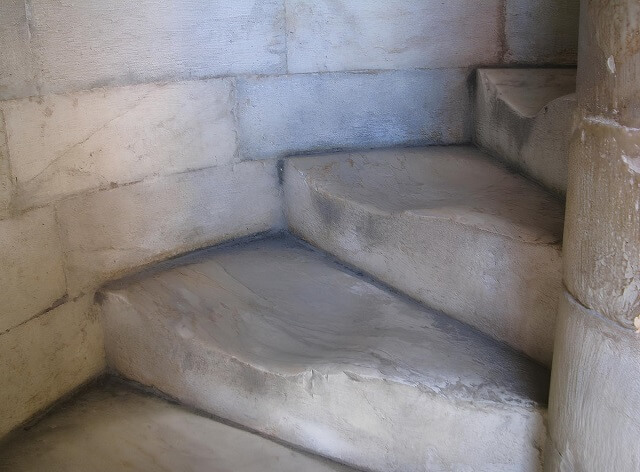 Der Schiefe Turm von Pisa von innen und entsprechend die besagten rutschigen Stufen