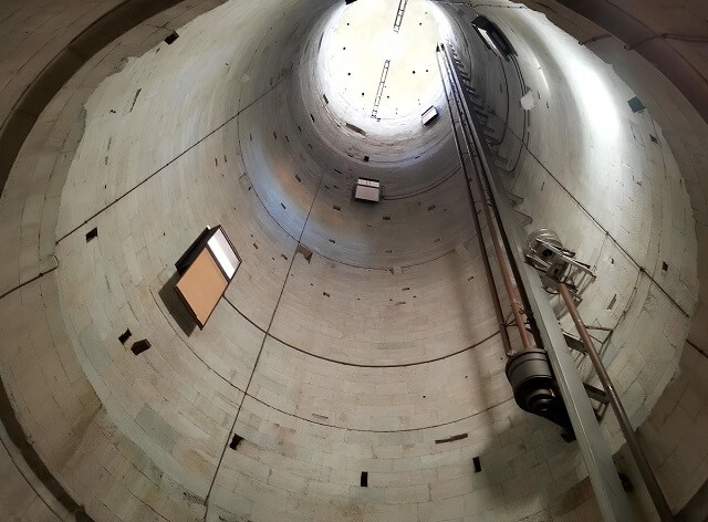 Der Eingang erfolgt von der Westseite. Nach oben führen 3 Wendeltreppen – vom 1. bis zum 6. Stock mit Ausgang zur äußeren Galerie, vom 6. bis zum 7. Stock, und die kleinste – zur obersten Ebene.