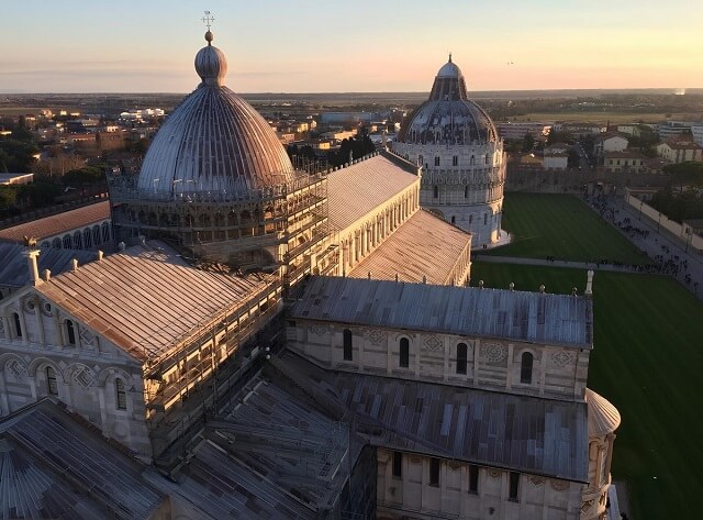 Auf der Piazza dei Miracoli, besser bekannt als Platz der Wunder, befinden sich vier Meisterwerke mittelalterlicher Architektur – die Kathedrale (Duomo of Santa Maria Assunta), das Baptisterium (Battistero di San Giovanni), der Glockenturm (Campanile), der Friedhof Campo Santo.