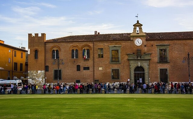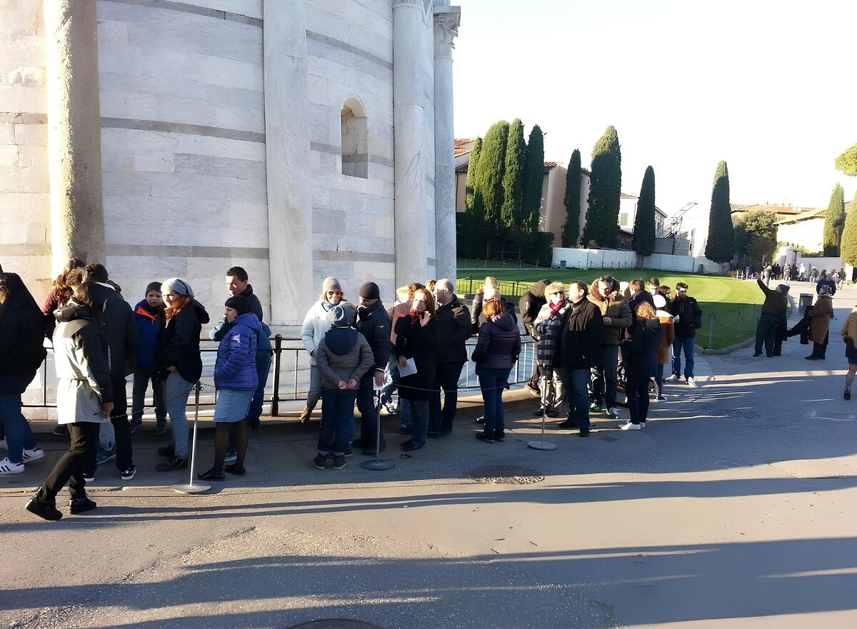 Warteschlange der Besuchswilligen zum Schiefen Turm von Pisa