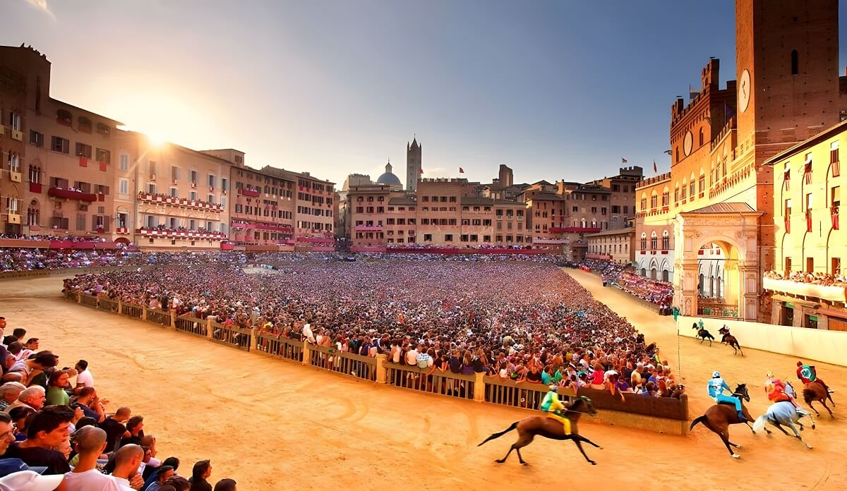 Eines der interessantesten Ereignisse, die in Siena stattfinden, ist das Pferderennen Palio (Il Palio), an dem die siebzehn Contrade von Siena teilnehmen. Zu diesem Zweck wird die Piazza del Campo am Umfang mit Sand bestreut, der nach dem Rennen entfernt wird. Vor dem Wettbewerb wird eine Kostümparade organisiert.