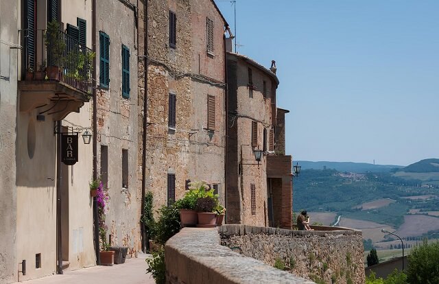 Aufmerksamkeit zog der Palazzo Comunale mit seinem hohen Turm an, der an den florentinischen Palazzo Vecchio erinnerte. Als wir auf die Spitze stiegen, sahen wir atemberaubende Aussichten der Toskana — endlose Weinberge, die sich bis zum Horizont erstreckten. Sie wechselten sich mit Olivenhainen und Zypressenalleen ab.